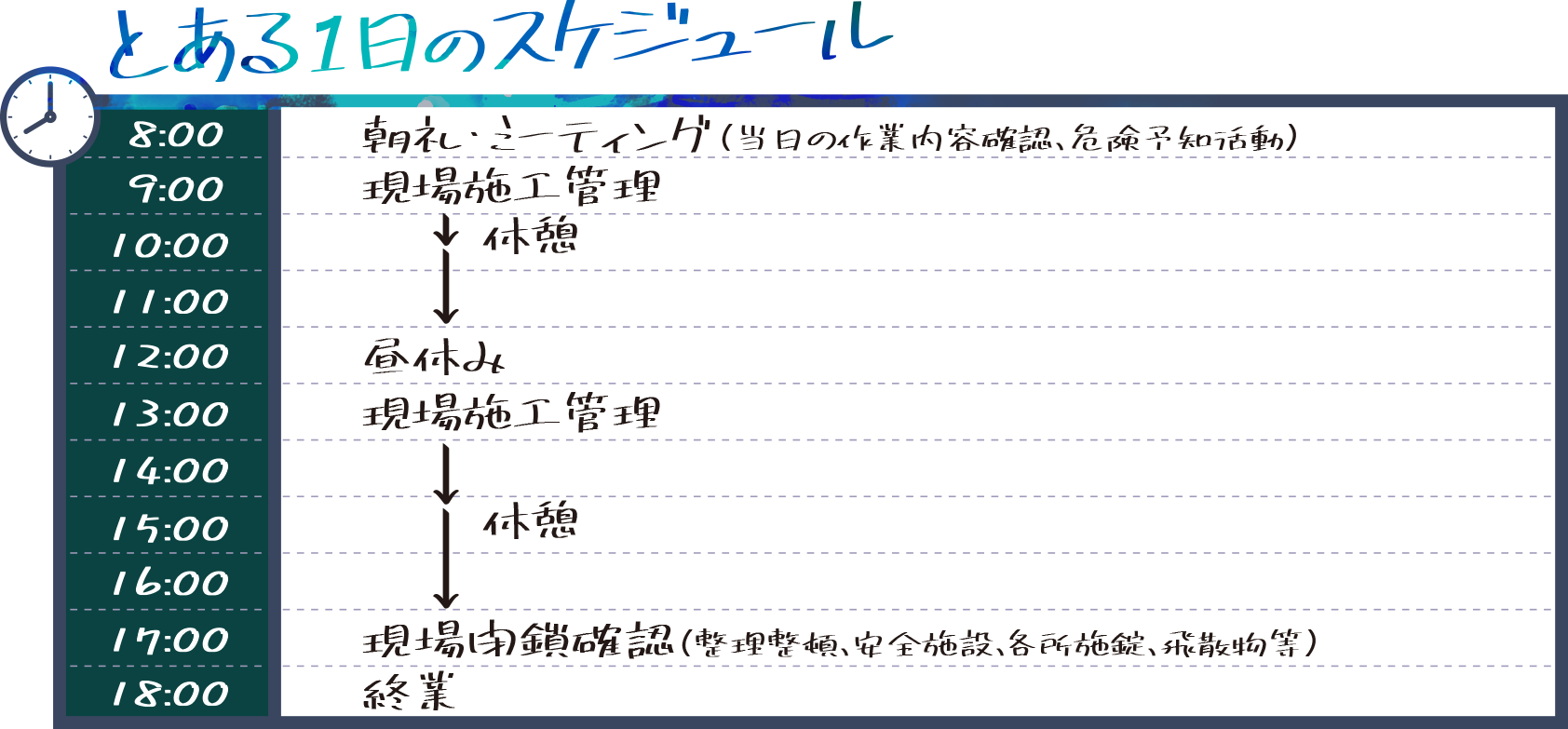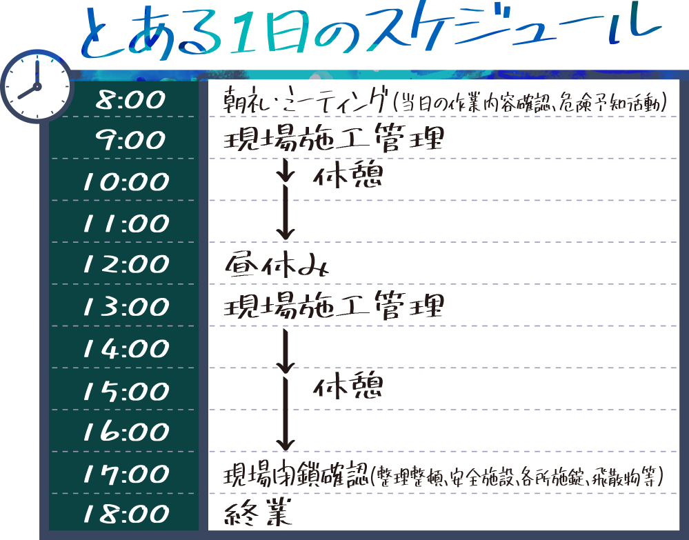 工事が順調に進捗できるように現場での施工管理や、発注者・協力業者との打合せ、関係各所への提出書類の作成等を行います。